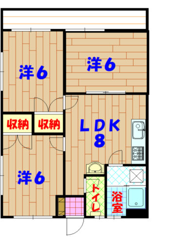 | 間取り | 3LDK(和6 洋6・6 LDK8) | 駐車場 | 有(空有り) 1台(2台目¥2,000-) |