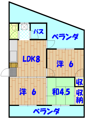 | 間取り | 3DK(洋6・6 和4.5 LDK8) | 駐車場 | 有(空有り) 2台 |