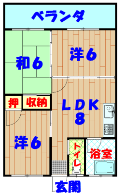 間取り3DK(洋6・6 和6 DK8) 駐車場有(空有り/敷地内) 1台