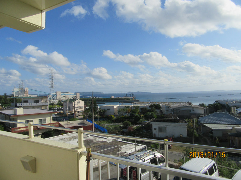 テラス美ら浜 駐車場1台無料 駐車2台目可・相談 2階以上 バス・トイレ別 エアコン 浴槽 即入居可 ネット無料 洗面台ユニット 海が見える オール洋間 礼金なし 角部屋