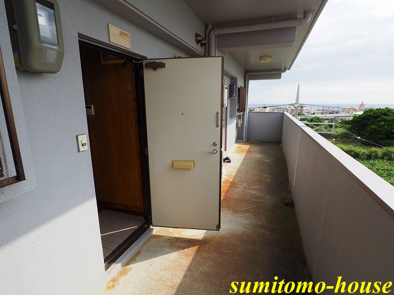 4階最上階フロア!廊下からは読谷沖の海が見えます(^_-)-☆インターネット使い放題完備♪