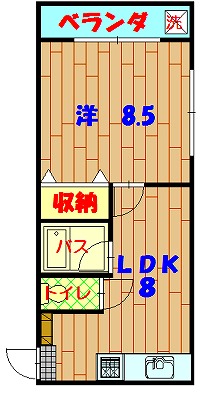 | 間取り | 1DK(洋8.5 LDK8) | 駐車場 | 有(空有り) 1台(軽自動車) |